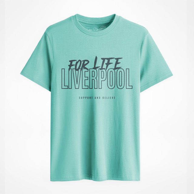 Vis din kjærlighet til Liverpool med stolthet! Denne turkise t-skjorten er et must for enhver ekte supporter. Med det dristige røde trykket "Liverpool For Life" uttrykker du din evige lidenskap for verdens beste fotballklubb. Komfortabel og stilren – perfekt for kampdager eller hverdagen.