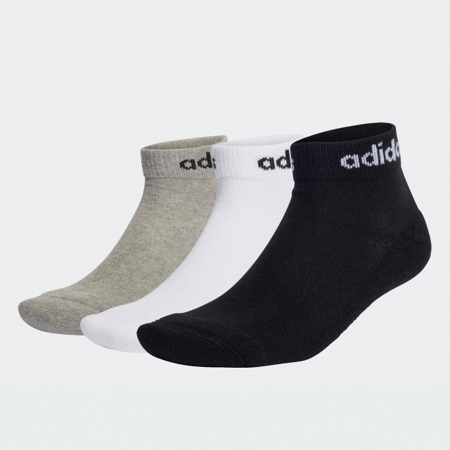 Klassiske og komfortable adidas-sokker i 3-pakning, perfekte for både hverdagsbruk og trening. De sporty, ribbestrikkede mansjettene gir en sikker passform som holder sokkene på plass hele dagen, mens demping i hæl og tå gir ekstra komfort der du trenger det mest. Et opplagt valg for å fylle opp sokkeskuffen – klar for både aktive økter og avslappende helger.